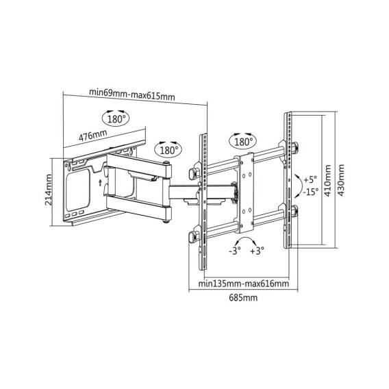 Uchwyt do ściany 37-70 cali czarny Cabletech LPA49-463D